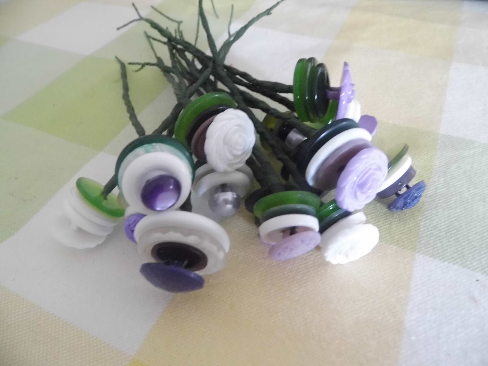 It is still a work in progress but I would like to make an arrangement using some of the things that I love buttons and tweed. I am not sure how this will work out visually but I do have a very vague idea of what I want it to look like in my mind. Time will tell...